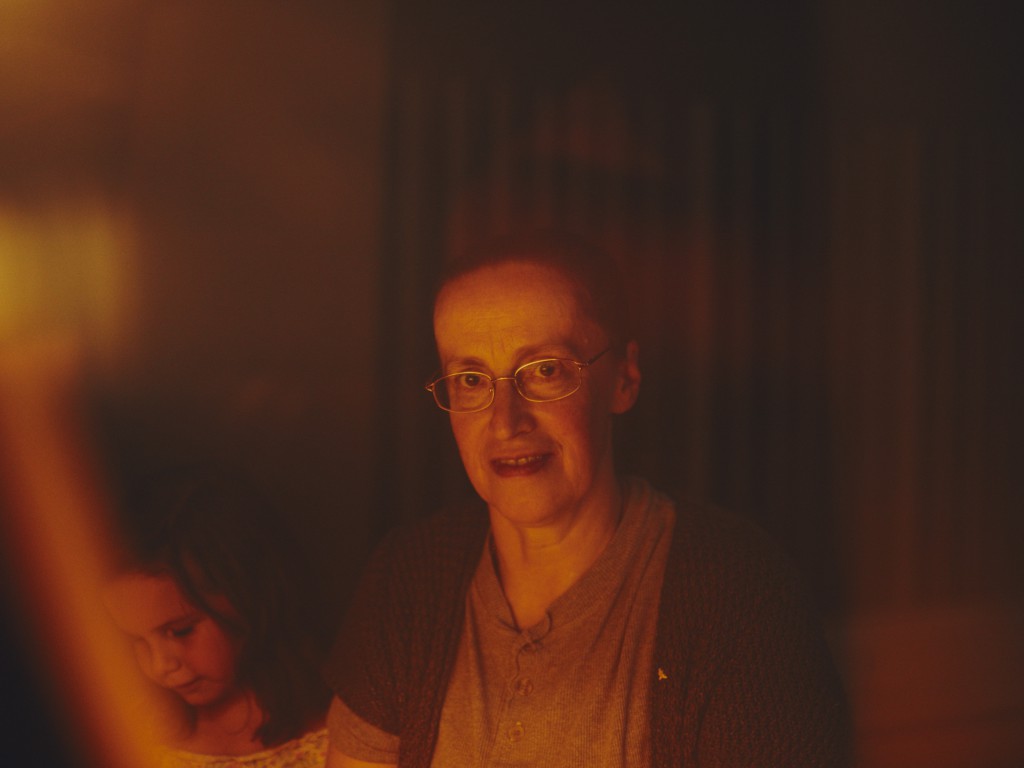Susanna Röser mit ihrem Hund Jenny in ihrer 40-Quadratmeter-Wohnung