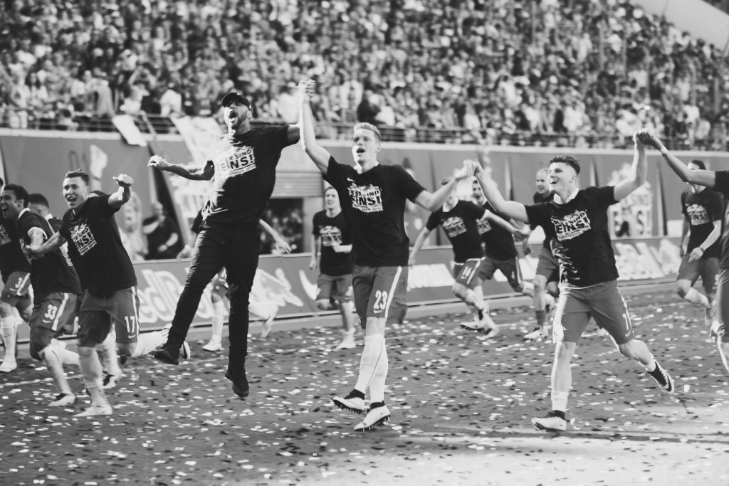 Nur sieben Jahre nach der Vereinsgründung schafft der RB Leipzig den Aufstieg in die 1. Bundesliga.