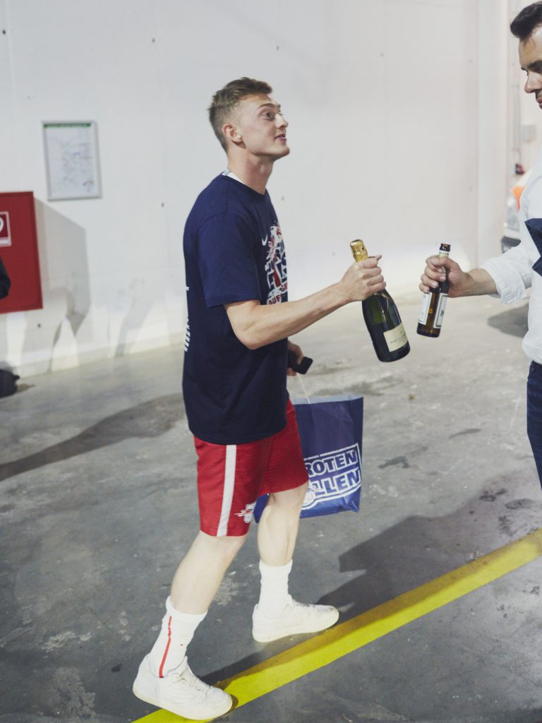 Georg Teigl und Dominik Kaiser im Siegerbus