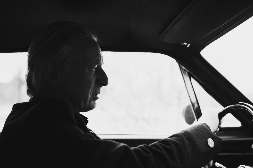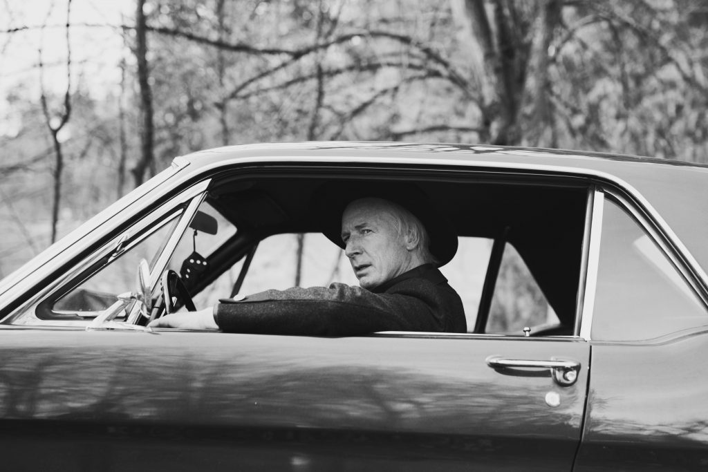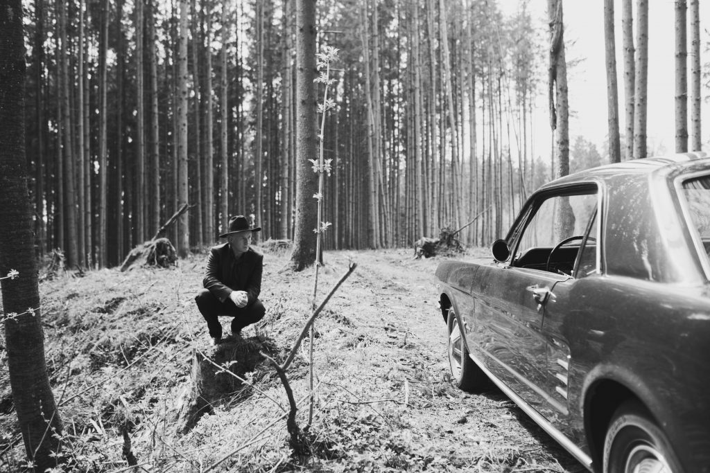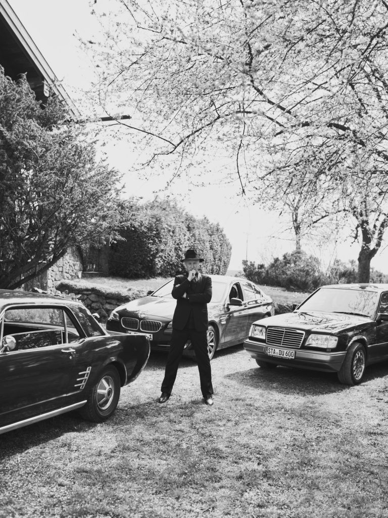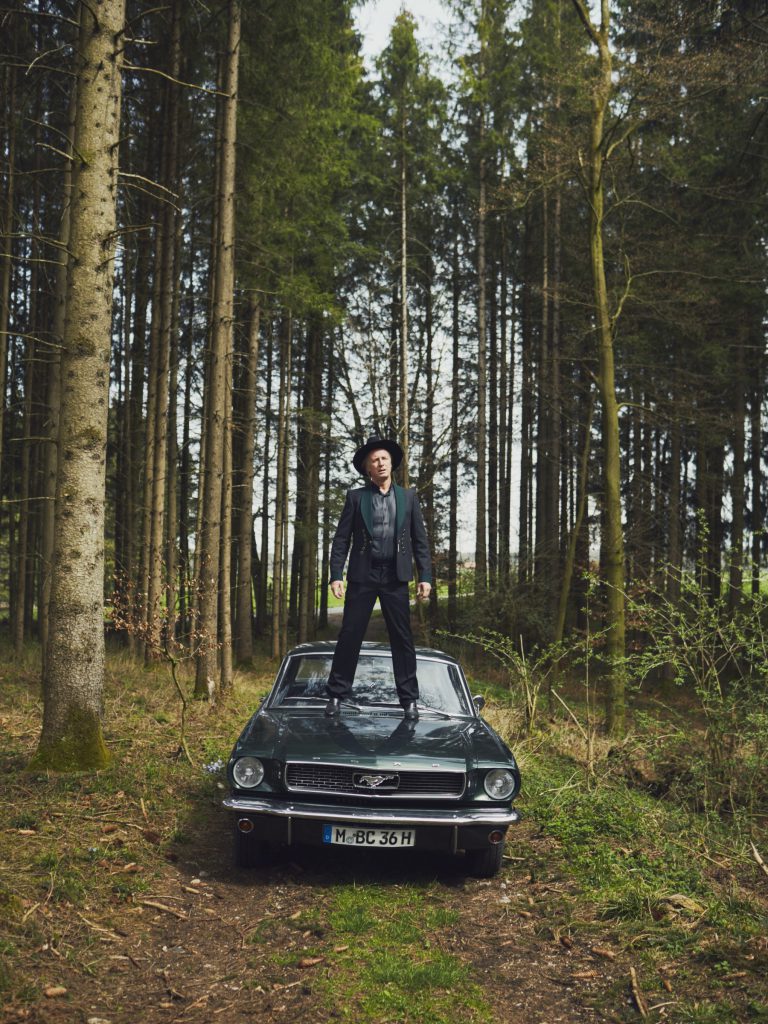 DJ Hell auf seinem Ford Mustang