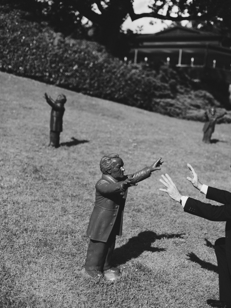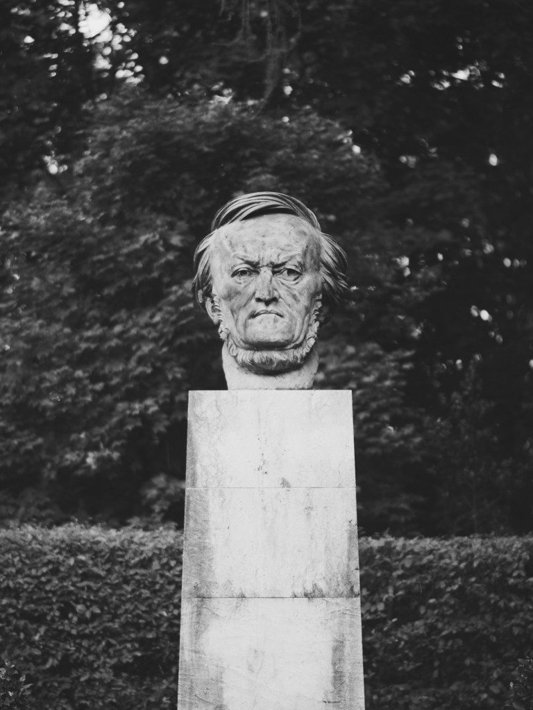 Wagner-Büste des umstrittenen Bildhauers Arno Breker im Park des Festspielhauses.