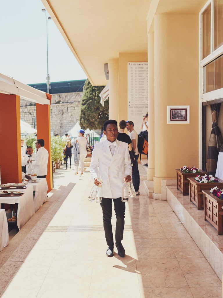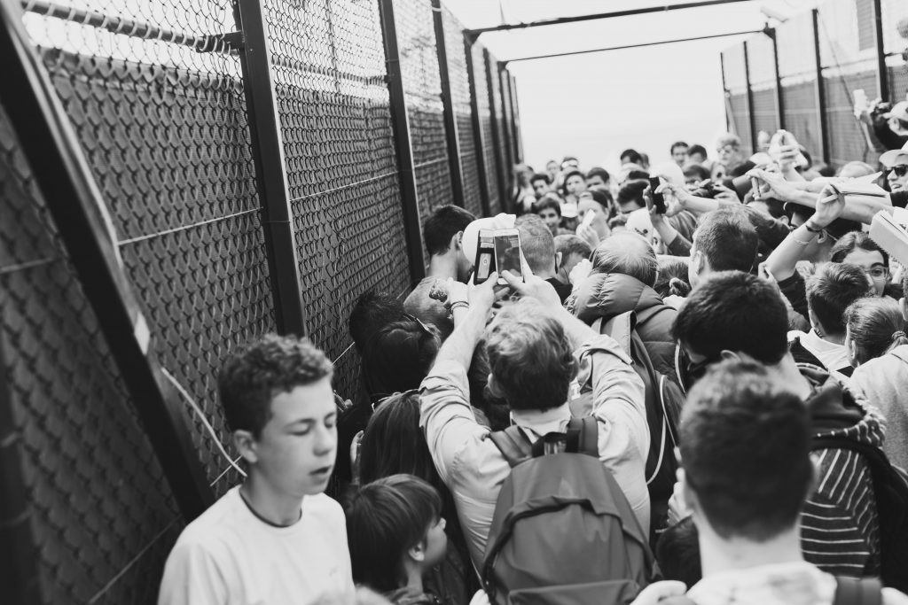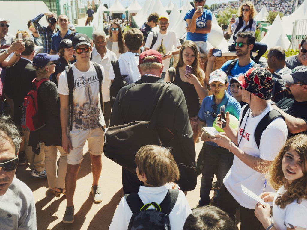 Auf einem kleinen Nebenplatz beobachtet er den nächsten Gegner.