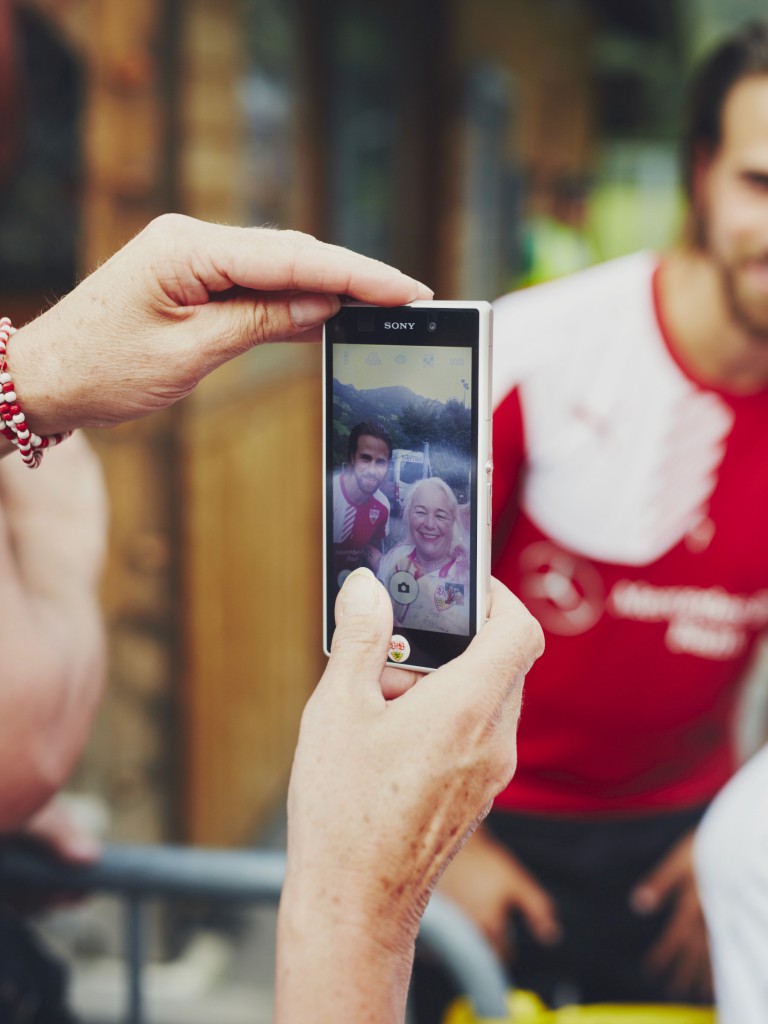 Martin Harnik lässt sich mit einem Fan fotografieren.