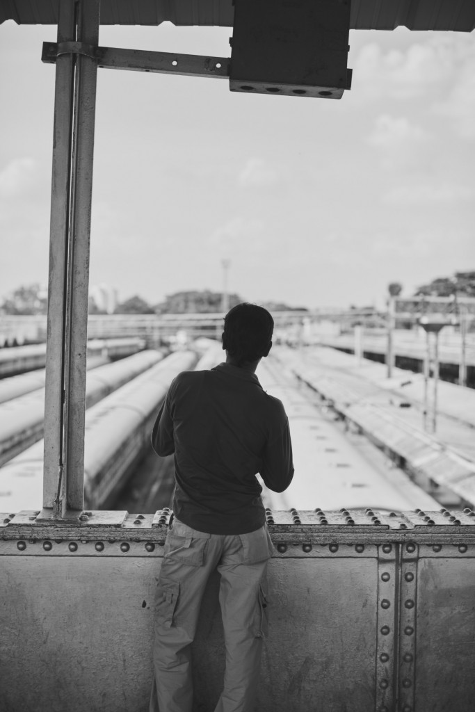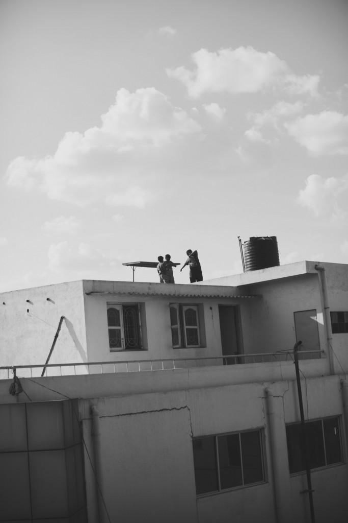 Pförtner auf einem Hochhausdach in der Innenstadt